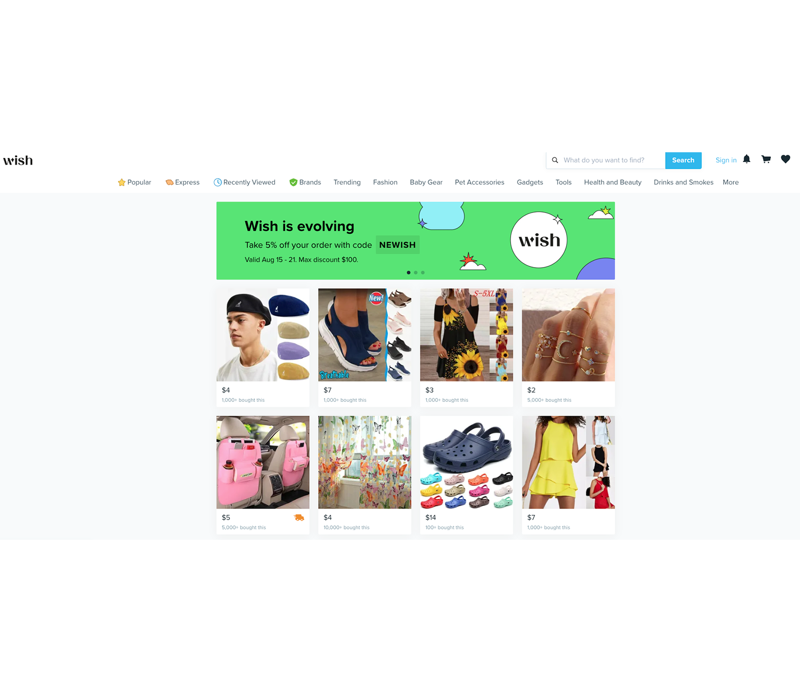 Wish’s proprietary personalization algorithm benefits merchants by matching their products to customers who are most likely to make a purchase. It’s also a frequent advertiser on Facebook, Google, and Social Media platforms such as Instagram and Twitter so you can reach a wide audience.