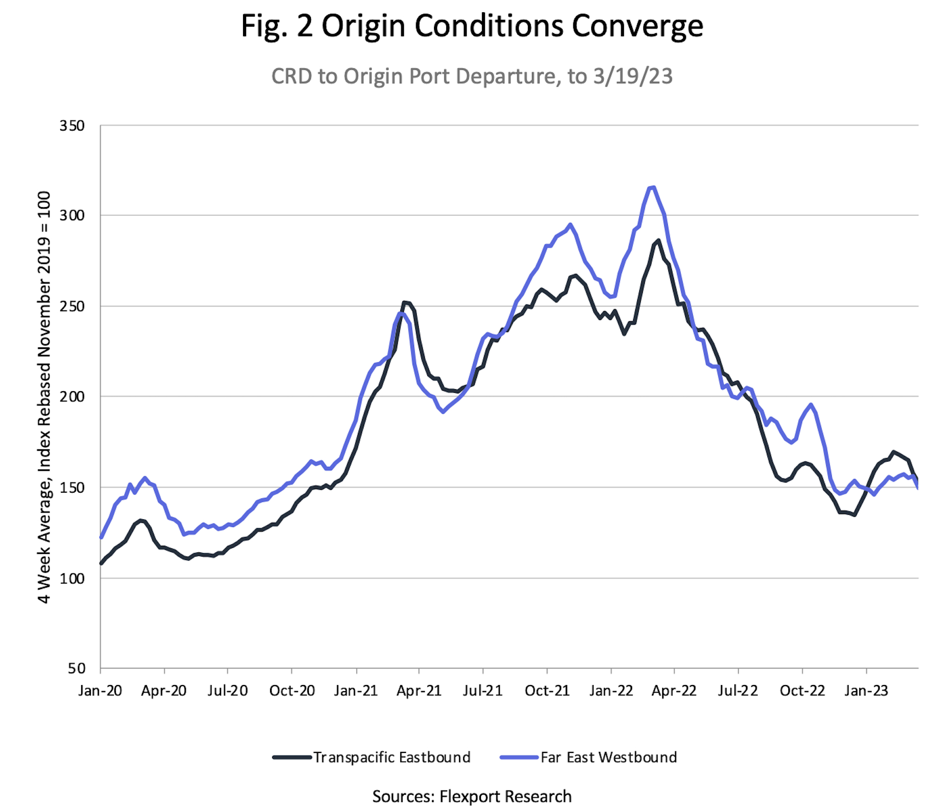 We can, however, say that there have been significant increases in all three stages over the course of the pandemic. The OTI has recently been augmented with an additional measure of the first stage of the journey (Cargo Ready to Origin Port Departure, also known as the Stage 1 Index) on an indexed, four-week trailing average basis as part of the Logistics Pressure Matrix.